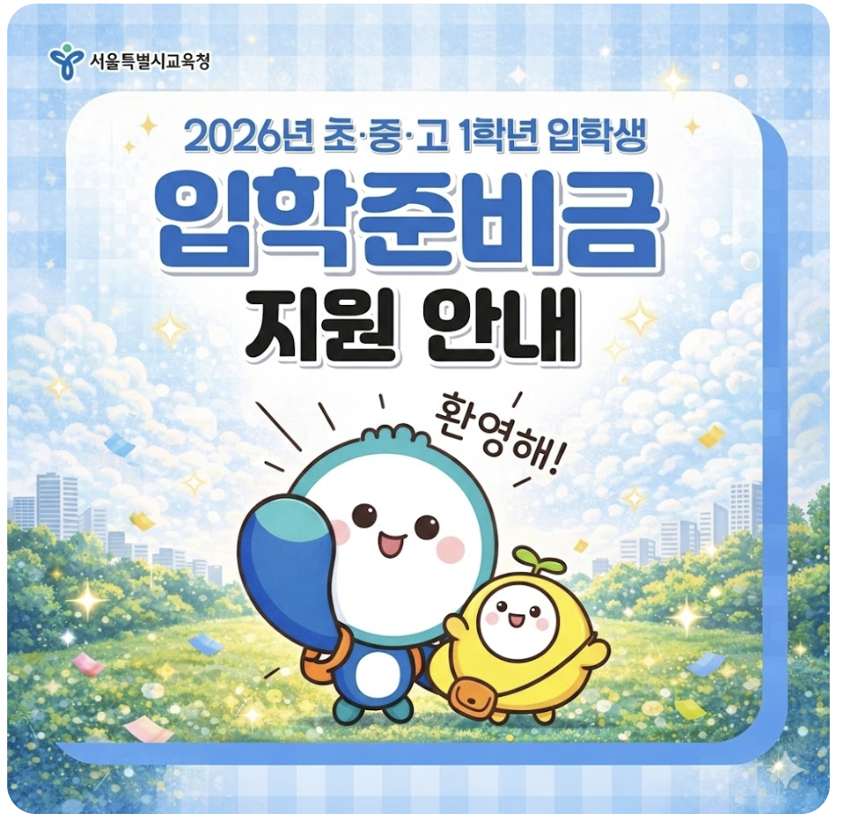 2026년 초·중·고 1학년 입학생을 대상으로 서울특별시교육청에서 입학준비금을 지원합니다.